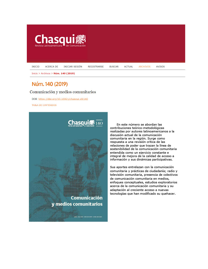 Lemus, M.C. (2019). Medios del Tercer Sector en México. Un análisis comparativo entre los medios concesionados y los medios sin regulación estatal. Chasqui. Revista Latinoamericana de Comunicación. 140. Pp. 93-112. DOI: https://doi.org/10.16921/chasqui.v0i140