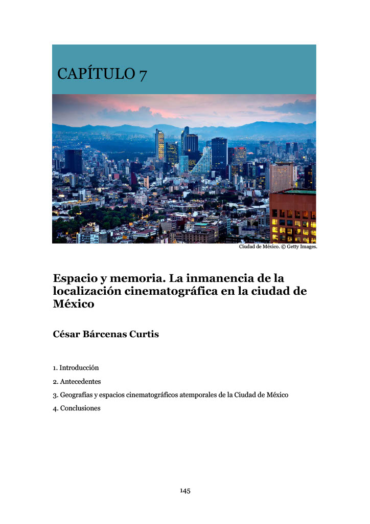 Bárcenas, C. (2024). Espacio y memoria. La inmanencia de la localización cinematográfica en la ciudad de México. En J. Nieto, & Martínez-Hermida, M. (Eds.). Las Film Commissions en Europa y América Latina. Influencias de los espacios y territorios cinematográficos en la cultura y el desarrollo económico y social (Pp. 145-157). Razón y Palabra Editorial. https://razonypalabraeditorial.com/wpcontent/uploads/2024/04/libro-las-films-ryp.pdf