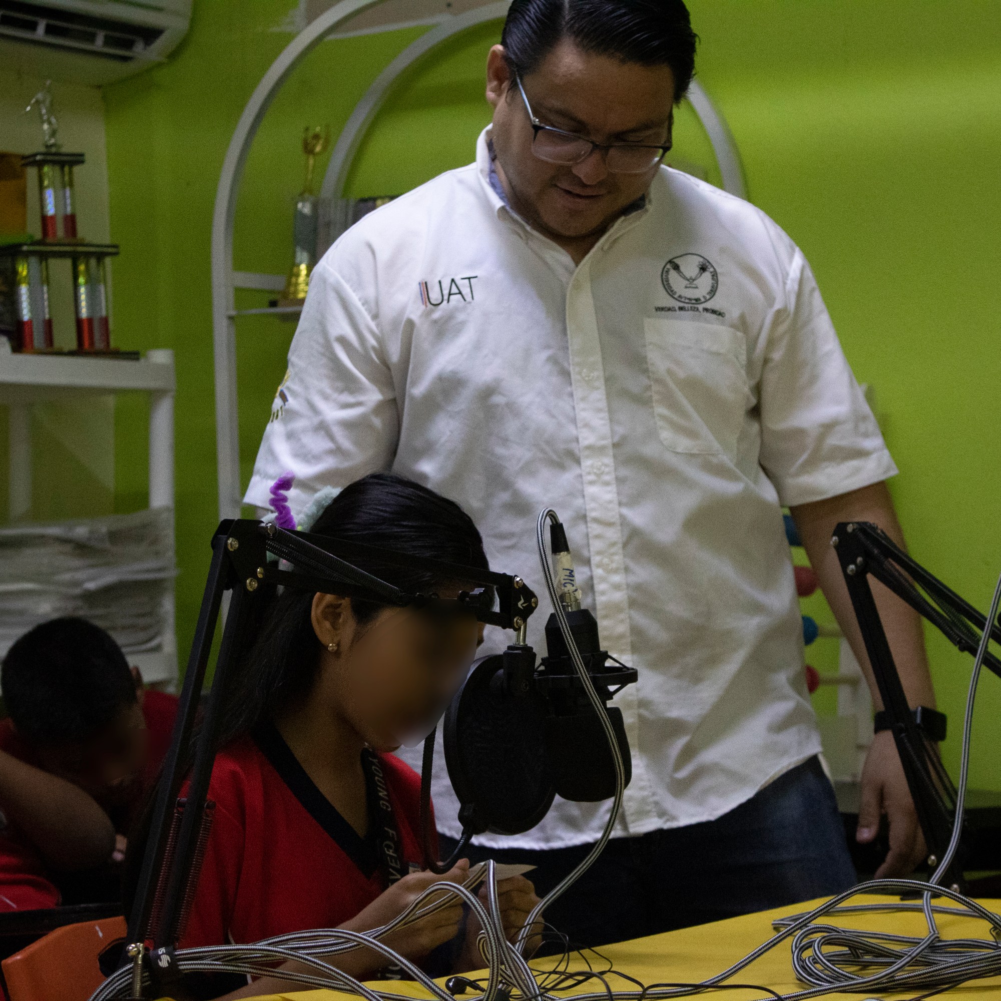 Uno de los momentos mas divertidos para los estudiantes fue la instalación de una cabina de radio móvil en la escuela. Los estudiantes tuvieron la oportunidad de experimentar cómo funciona una estación de radio, grabar sus propias emisiones y expresar sus aspiraciones sobre la ciencia y el futuro. Esta experiencia culminó con la creación de una postal radiofónica, en la que los alumnos reflejaron sus ideas y sueños relacionados con la ciencia.