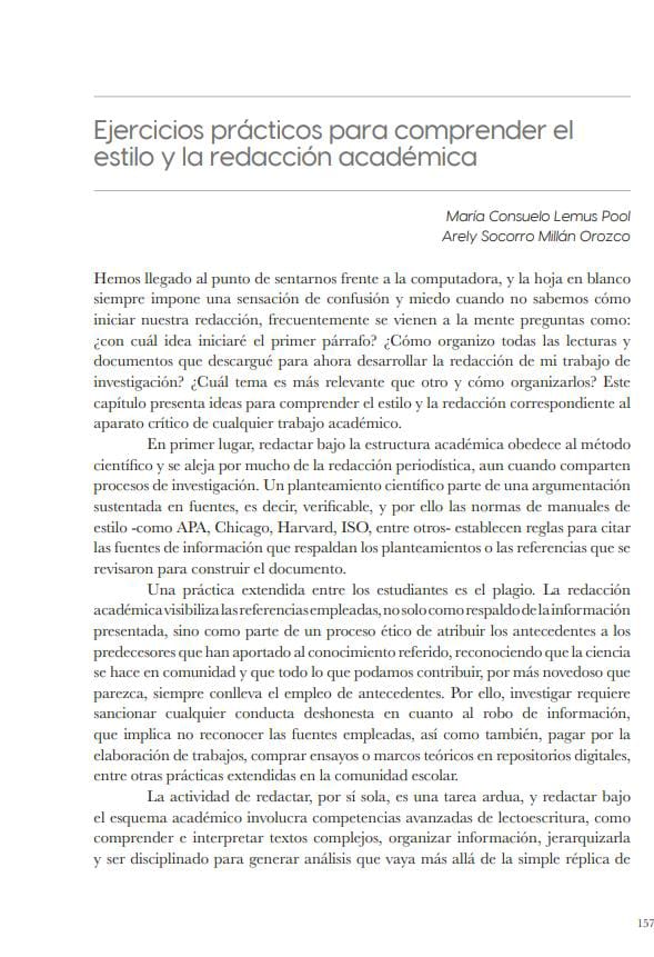 Lemus-Pool, M.C. & Millán-Orozco, A.S. (2025). Ejercicios prácticos para comprender el estilo y la redacción académica. En Lemus-Pool, M.C. & Carro-Peréz, E.H (2025) Investigar la comunicación: estrategias prácticas para formalizar un objeto de estudio (pp. 157 – 168). Fontamara.